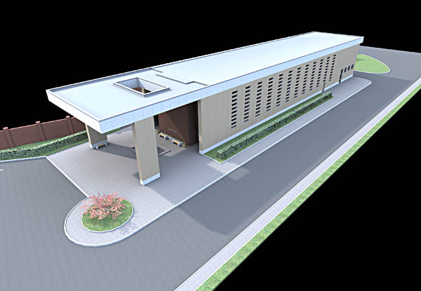 Вспомогательные помещения траурных залов (холодильные камеры, помещение подготовки тел и пр.) расположены в одноэтажном объеме.