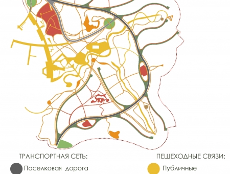 Жилые группы сформированы с учетом рельефа и создают ряд уютных двориков, участки отделяются от них хоз. постройками (теплицы, мастерские и т.д.).