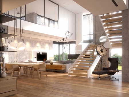 Проект современной резиденции, которая находится на этапе строительства в Польше. Дом площадью 980 м2 рассчитан на большую семью в три поколения, которые высоко ценят комфорт, современность и оригинальность. Фасад двухэтажного здания привлекает легкостью своей формы. Большая площадь остекления дома обеспечивает оптимальное естественное освещение помещений и прекрасный вид на окрестности.