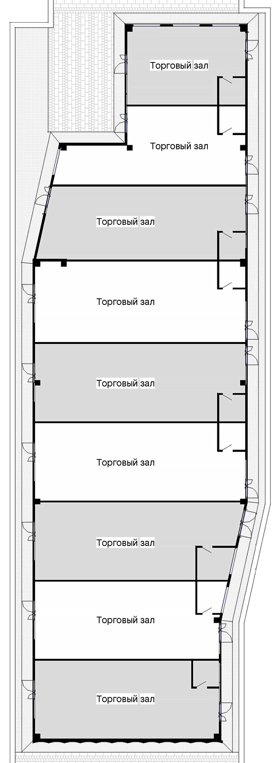 Загрузка магазинов осуществляется в основном по внешнему контуру здания, также возможен доступ с пешеходных улиц.