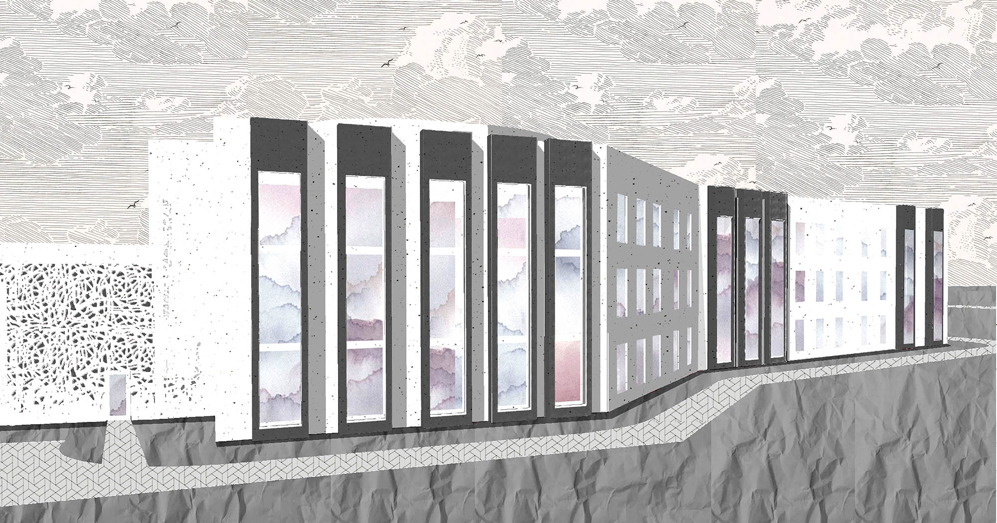 Для отделки наружных стен выбраны краска белого и темно-серого цвета, крупноформатные облицовочные панели из серого бетона.