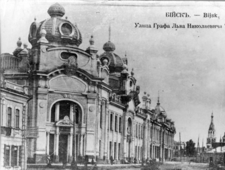 Здание расположено в исторической части города Бийска. Северо-восточной торцевой стеной вплотную примыкает к соседнему зданию - Пассажу Второва. Доминирует в застройке, замыкая южную сторону квартала и оформляя угол улицы Л.Толстого и З.Двойных.