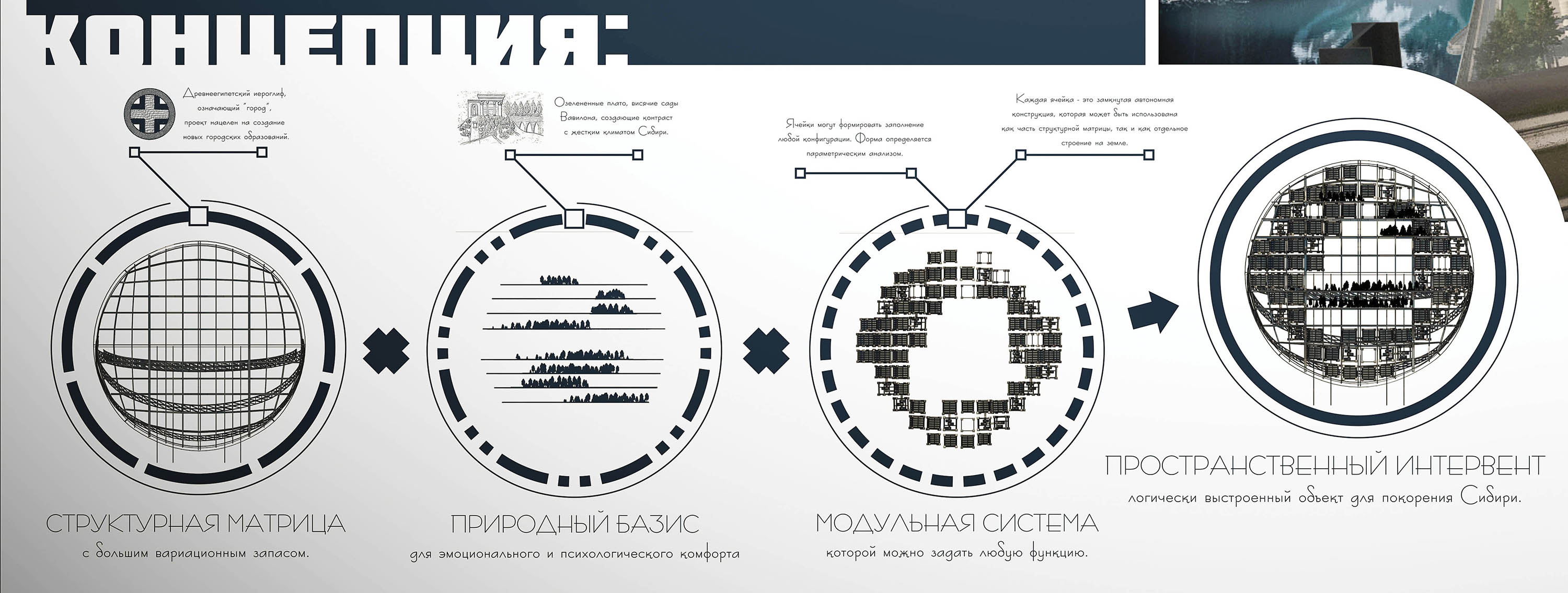 Четвертый этап - "финальный" - запуск системы обеспечения автономности, определение центра и композиции точек привязки к основным функциональным зонам. Формирование свободной городской конгломирации. Это объект, наделенный особенностями, которые будут давать ему свойства интервента пространства, демографического катализатора и градообразующего узла.
