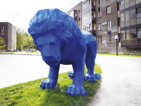 Идея: Лев - один из символов Баварии, в том числе силы и надежности, хранитель места, призванный оберегать и защищать свою территорию. Идея, сделать Льва синего цвета, вытекает из концепции второго “лепестка” генплана жилого комплекса, в котором основную роль играет морская тематика.