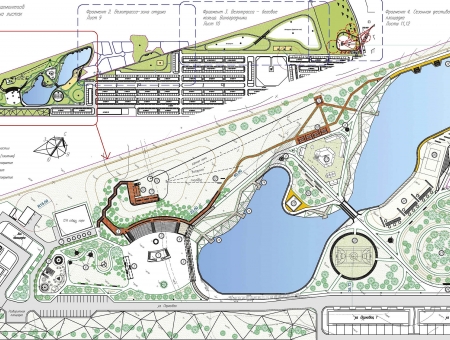 В результате разработки концепции был принят вариант, включающий в себя изменение рельефа, создание разных функциональных зон, разбивку дорожно-тропиночной сети, создание комплексного благоустройства территории.