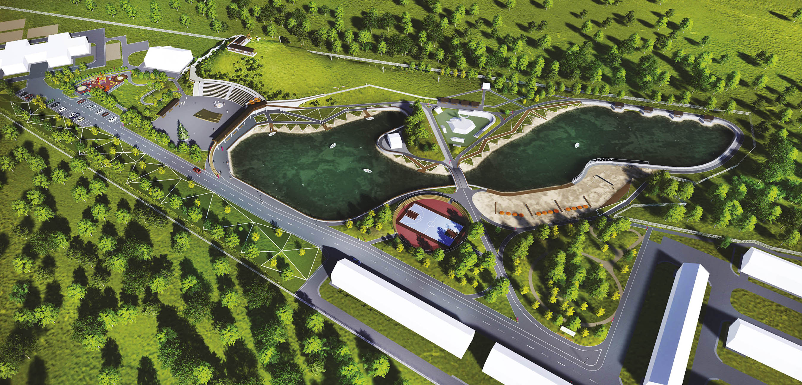 Вторым центром притяжения стал искусственный водоем-озеро с прогулочной набережной, пляжем и беседками, системой причалов для катания на лодке и катамаране.
