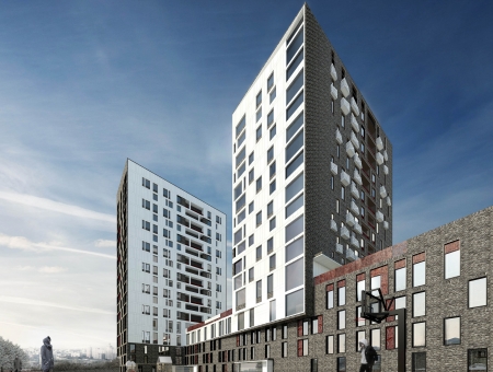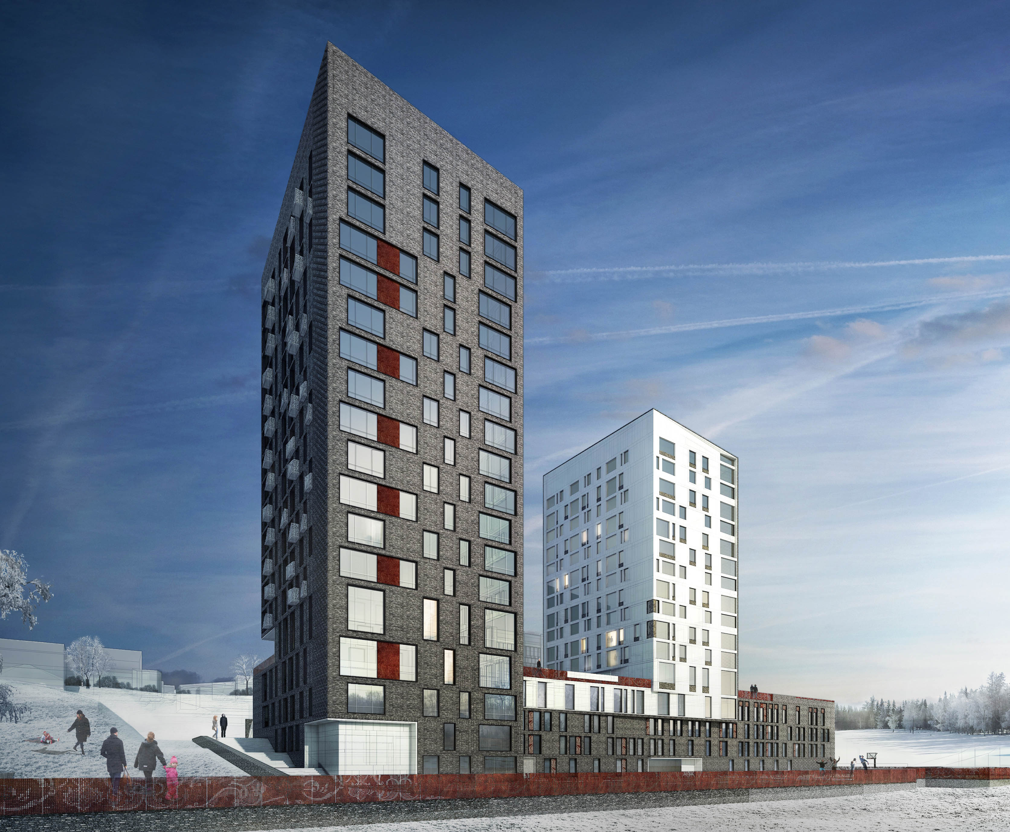 Комплекс первой очереди строительства состоит из двух жилых односекционных башен высотой 12 и 14 этажей, стоящих на общем стилобате, в котором размещаются подземный паркинг на 241 машин, технические помещения жилого комплекса и встроенные коммерческие помещения.