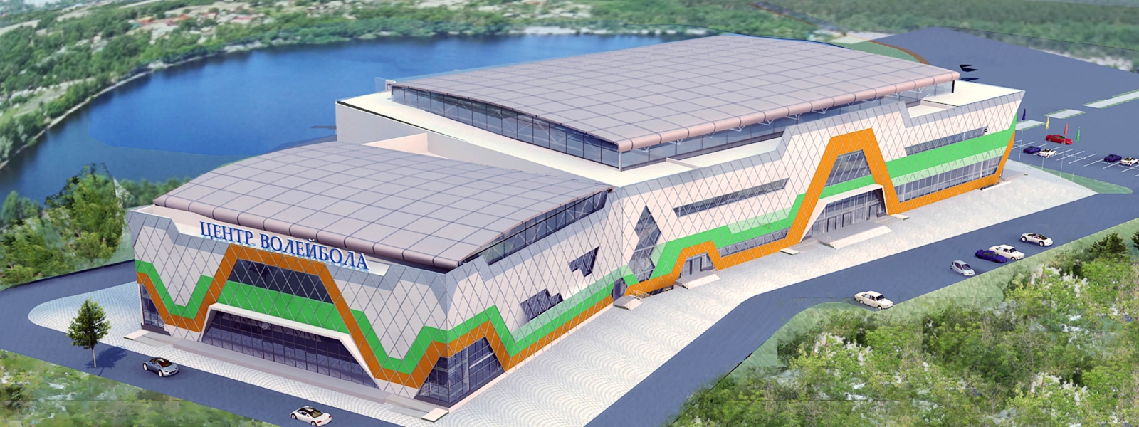Здание «Центр волейбола»- сложное в плане,2-х, 3-х этажное, с подвалом. Конструкции – монолитные ж/б колонны, ж/б трибуны и металлические большепролетные фермы над спортивными залами. Покрытие – рулонные материалы по утеплителю и профлисту.